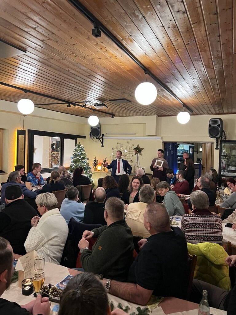 Für das leibliche Wohl sorgte ein hervorragendes Buffet, das zu gemütlichen Gesprächen und einem angeregten Austausch einlud. Ein besonderer Moment war der Besuch unseres Landesvorsitzenden, Dr. Jan Bollinger, der weihnachtliche Grußworte an die Versammelten richtete und die Bedeutung des gemeinsamen Miteinanders betonte.