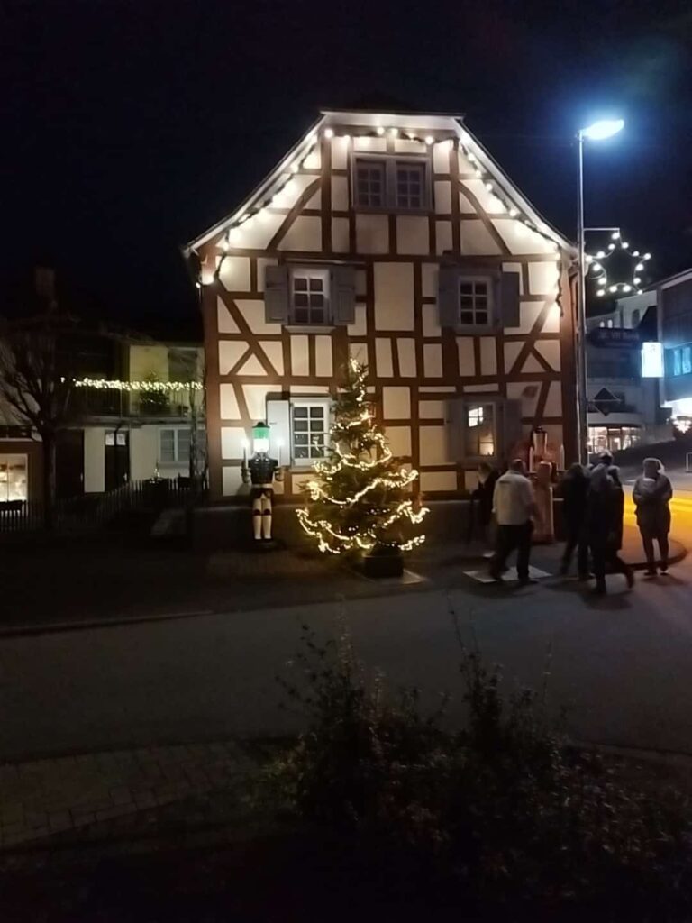 Ein absolutes Highlight des Tages war eine exklusive Führung für unsere 25-köpfige Gruppe durch das festlich geschmückte Dorf, die wir persönlich Bürgermeisterin Monika Kukla verdankten. Unter ihrer kundigen Leitung tauchten wir tief in die faszinierende Welt ein, die Waldbreitbach über seine berühmten Krippen hinaus ausmacht: die stimmungsvolle Atmosphäre eines ganzheitlichen Weihnachtsdorfs mit seiner einzigartigen Dekoration und festlichen Inszenierung.
